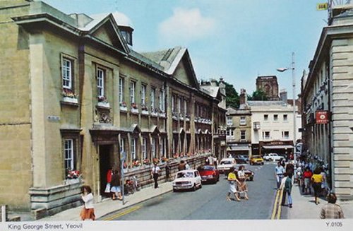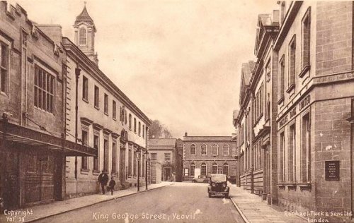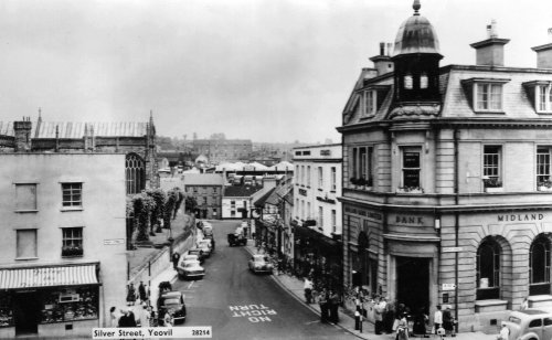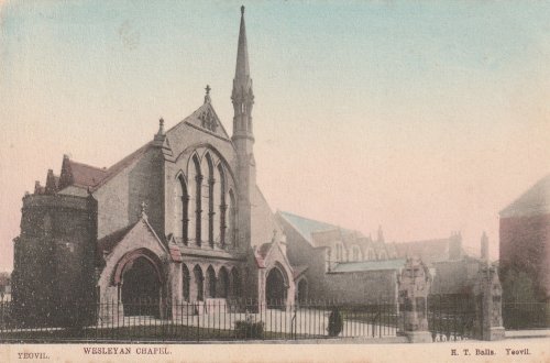 In 1869-1870, the new Wesleyan Methodist church was built in Vicarage Street and opened on 30 March 1870. On Monday 7 October 1940 the first Luftwaffe raid on Yeovil occurred in the afternoon when a flight of twenty Junkers JU88 twin-engine medium bombers dropped over thirty high explosive bombs and eighteen oil bombs on Yeovil. A direct hit on the Methodist church's public shelter killed four people. The church itself also suffered substantial damage to its fabric, including the loss of the tall pinnacle seen here.