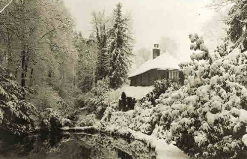 Ninesprings and the cottage photographed during the 'Great Snow' of 1909. This 'RP' postcard is by an unknown publisher, but was posted in 1909.