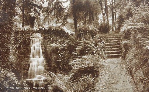 Now part of Yeovil Country Park, Ninesprings is, essentially, a broad-leaved woodland valley of some twenty acres on the south east edge of Yeovil with nine springs supplying water to small streams and ponds. The water issues into Dodham Brook and, ultimately, to the River Yeo. It was developed as an ornamental park for the Aldon estate during the early nineteenth century and included walks, bridges, grottoes, springs and lakes. Until the middle of the twentieth century the public only had access by ticket obtainable from the owner, Colonel HB Batten, the Town Clerk.