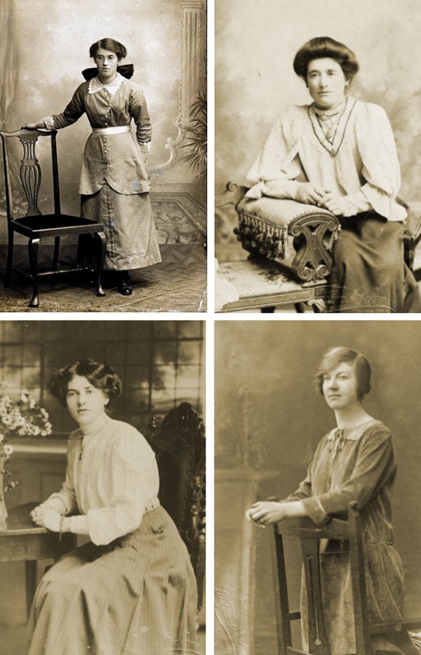All four of the above photographs are studio portraits printed as postcards. At top left is a postcard of a lady by Walter Rendell taken in his Yeovil studio, probably around 1914. Those at top right and bottom left are both by Rendell, but later, say 1919, while bottom right is later still, say, mid-1920s,