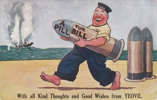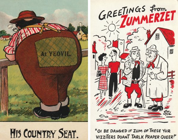 It was common practice to take a standard stock postcard, but individualise with the name of the town specifically for local sales - in this instance, and below, Yeovil.