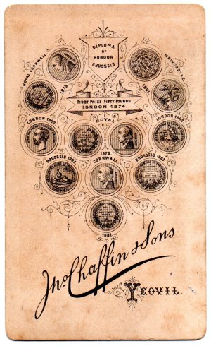 Initially John traded as 'Chaffin of Yeovil' and early examples of his work, cartes de visite, are shown below, invariably labelled 'J Chaffin'.