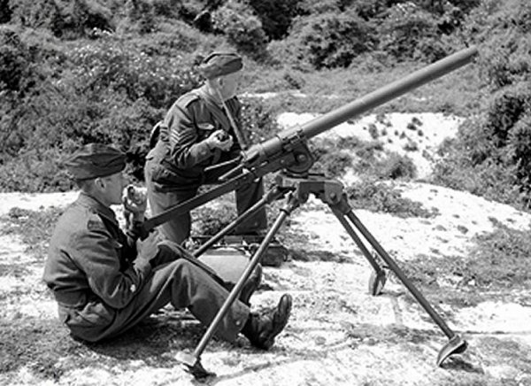 It was cheap (costing £10 per unit in 1940) and easy to manufacture and consisted of a metal tube attached to a tripod, with a simple breech at one end. It fired the No 76 Special Incendiary Grenade (also known as the Self Igniting Phosphorus, or SIP, grenade) and rounds were fired with the use of black powder that was detonated by a toy pistol cap. It weighed about 60 pounds (27.2 kg) and had an effective range of about 120 yards (110m) with a maximum range of about 300 yards (275m). Its major disadvantage was the huge cloud of smoke produced when it was fired, revealing its position.