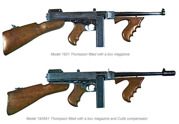 The Thompson SMG was a blowback operated, air cooled, magazine fed weapon designed to be fired from the shoulder. It could take 20 and 30 round box magazines as well as 50 and 100 round drum magazines and had selective fire. It weighed around 10.5 lb (4.8 kg) empty - the filled 100 round magazine added a further 8.5 lb (3.9 kg). It was 33.75" (852mm) long with a 10.5" (267mm) barrel. Cyclic rate of fire was 700 rounds per minute with a muzzle velocity of 920 ft/sec (282 m/sec). The effective range was 220 yards (200m) with a maximum range of 1700 yards (1570m).