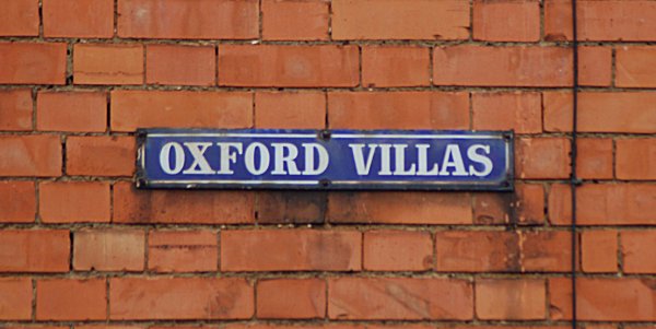 The lovely enameled 'Oxford Villas' sign. Photographed in 2014.