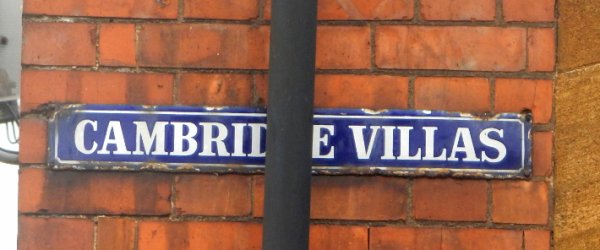 One nice feature of Oxford Villas and Cambridge Villas are the enameled signs affixed to the terraces and photographed below.