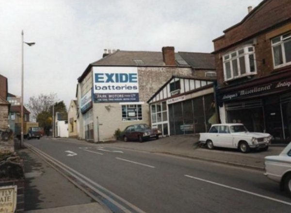 Although it looks like it could be the same view as the previous photograph, this photograph of the 1960s is actually taken further along Park Road at the junction of Park Road with Clarence Street, with Telford House, the old telephone exchange, behind the photographer's back. At far right, in the distance, is Princes Street. At centre is Griffiths estate agents and at right, with the Exide sign, is Park Motors. None of these buildings survive.