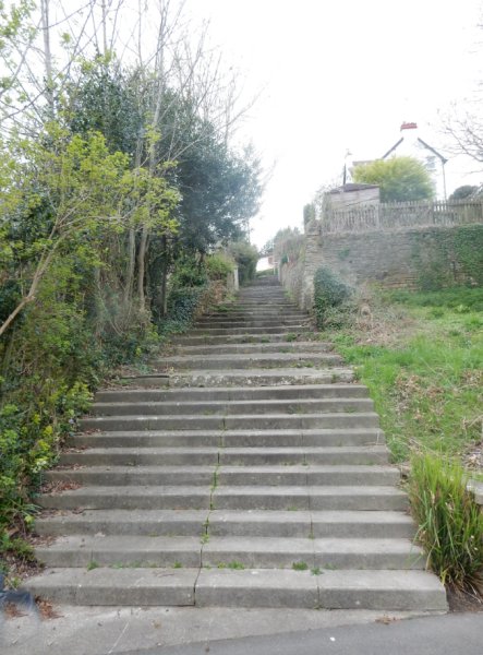 The steps from Park Street leading to Penn Hill. In a colourised photograph of 1959.