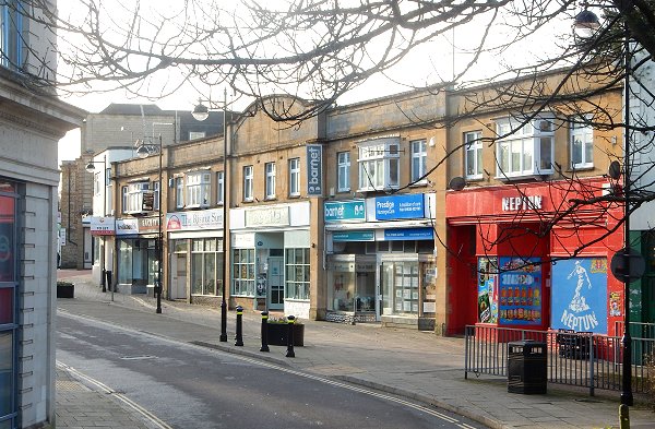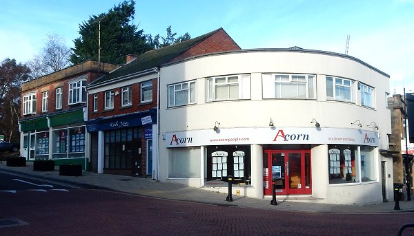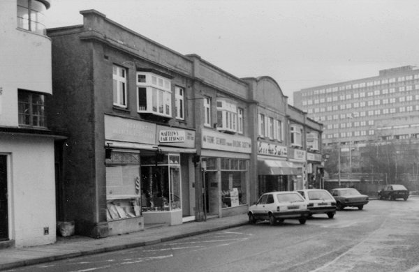 The 'new' shopping centre of 1930. At centre the domed parapet mirrored that on E Price & Son's music shop around the corner in Park Road. Photographed from Court Ash in 2016.