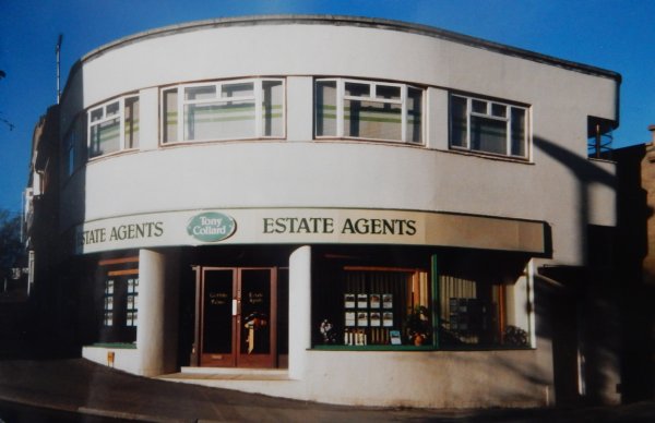 This photograph shows the curved structural steelwork being erected in the mid-1930s for the present Art Deco style building on the corner of Park Road and Princes Street, replacing the corner premises of CH Clarke seen in the advertisement above. This new building was built for Burtol Cleaners, photographed below. The steelwork was erected by FW Sibley & Co, while the main contractor for the project was D Singleton & Son of Yeovil. The building was later occupied by Griffith & Palmer estate agents.