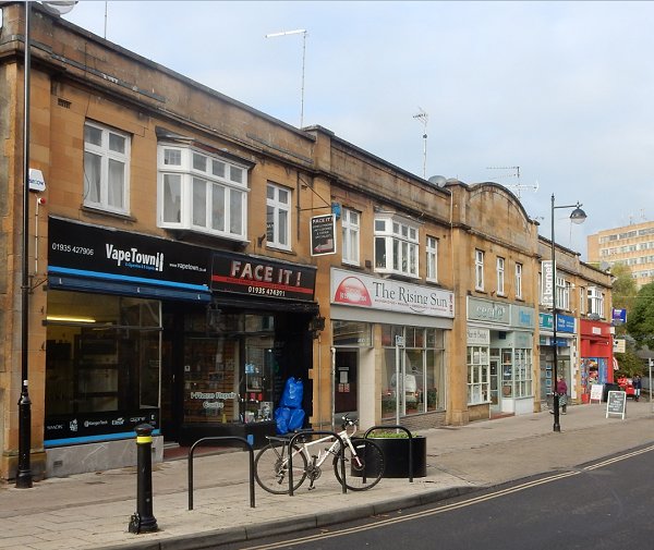 Although advertised as Yeovil's New Shopping Centre in 1930 (see below) the parade of shops built in Princes Street and wrapping around the corner into Park Road are not really architecturally homogenous. The central building of the new Parade in Princes Street featured a domed parapet mirroring that on E Price & Son's music shop around the corner in Park Road but the building next to Price's premises and the later Art Deco style corner building, although attractive, were simply infill buildings.