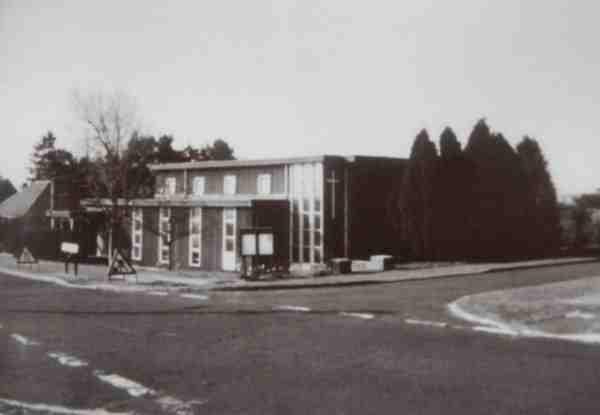 It was originally a temporary mission church built in corrugated iron on the same site in 1946. The new church, illustrated below, was a controversial modern design with timber-clad walls and a flat roof. It was dedicated on 18 May 1958 by the Bishop of bath and Wells, the Right Reverend Harold Bradfield (1898-1960).