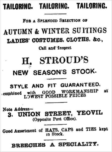 H Stroud & Son's advertisement running in the Western Chronicle throughout 1901 and 1902.