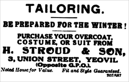 ... and H Stroud & Son's advertisement running in several editions of the Western Chronicle during November and December 1924.
