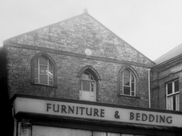 The Methodist (Wesleyan) meeting house, or chapel, at centre above part of the Co-operative Society's furniture and bedding store. Photographed in the mid-1960s.