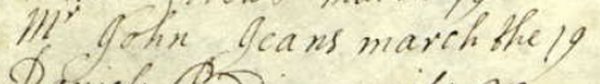 The 19 March 1726 entry of burial of Mr John Jeans in St John's parish register.