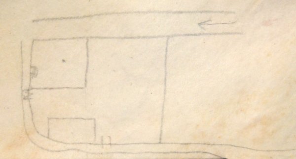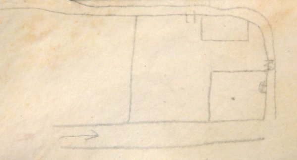 This is an enlargement of the sketch map that someone later drew on the bottom right corner of the above indenture, indicating the location of both the freehold and leasehold plots referred to in the indenture.