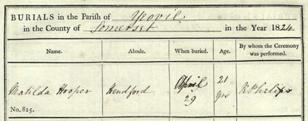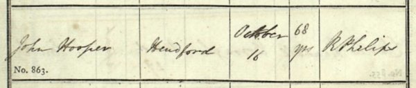 John Hooper died in Yeovil in October 1824. As was his request in his will, he was "... buried in a plane and frugal manner in my family vault in Yeovil church...". His will is transcribed below.