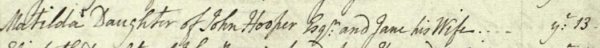 The record of Matilda Hooper's baptism of 13 February 1803 at St John's church.