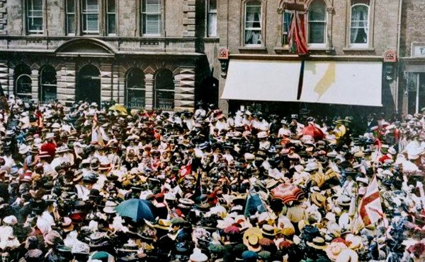 Crowds in the Borough and High Street awaiting the declaration of the election from the Town Hall in 1910.
