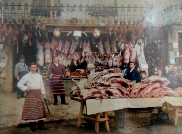 This photograph, taken around 1910, is of John Coombs Hayne's butcher's shop in the Borough (literally) - the shop was in the white building seen behind the handcart in the previous photograph. Hayne's moved to their current premises at the very northern end of Princes Street in 1939.