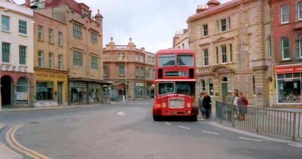 A late 1930s postcard albeit posted in 1943 (the Medical Hall is still there although it was destroyed by bombing in 1941) looking across the Borough with the shop of Clement White at left. Photographed from King George Street.