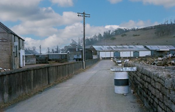 Turning once again to the south, with Summerhouse Hill in the background, the coal yard is at left with more sidings and the British Rail Parcels Office ahead. The area occupied by the railway buildings had originally been filled with pens for sheep and cattle but was later used for offloading goods and coal.