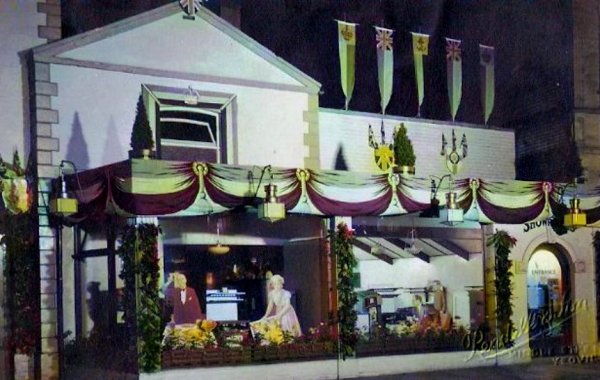 An unusual night-time view of a 1960s window display in the gas showrooms.