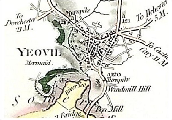 At the top of the map, “Turnpike” indicates the location of the Hendford Bridge gate before being moved to the top of Hendford Hill at the junction with Dorchester Road.