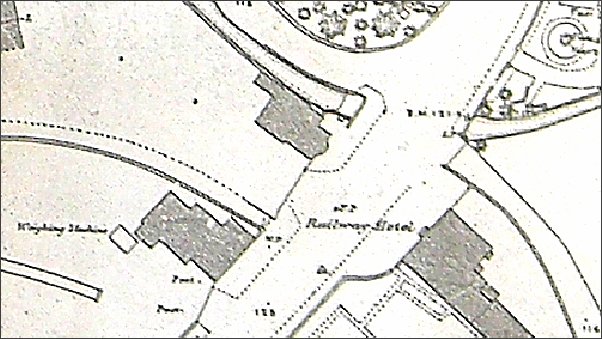 An extract of the 1886 Ordnance Survey showing the Hendford Bridge area. Dodham Brook runs from just left of centre at top towards top right and the Railway Hotel is at bottom right. The building at centre, towards the top, is in the logical place for the toll house and has a typical bay window to easily see approaching travellers.