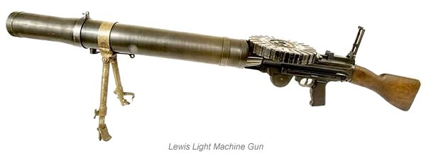 The Lewis light machine gun was developed by American Colonel Isaac Lewis, based on original designs by an American inventor called Samuel McClean. The gun was manufactured at Liège, Belgium and adopted by the Belgian army in 1913. In 1914 production began in England and America and the gun was adopted by the British Army in 1915 as a lighter and more portable alternative to the Vickers. It was also easier and cheaper to manufacture. It remained in service in Britain until replaced by the Bren gun in 1939.