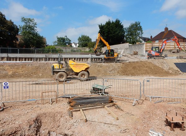 The new car park photographed in August 2016. The hospital is at extreme left, the corner of Roping Road is in front of the blue hoardings.