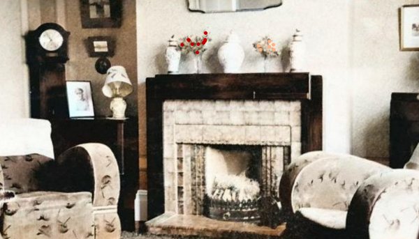 A photograph of a Hill, Sawtell & Co fireplace installed in a customer's house.