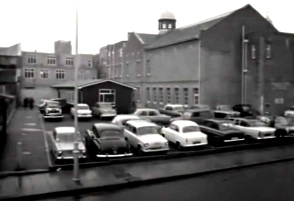 The 'shed' in the staff car park behind the municipal buildings of King George Street. At the end closest to the photographer was the children's library and at the far end, next to Borough Arcade, was my office for several years in the early 1980s. Photographed in the 1970s.
