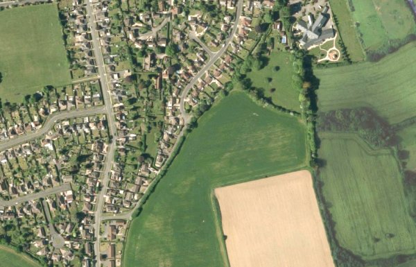 The modern satellite image showing the re-hashed fields. The area of what had been Long Close is at centre, again with a ghost of the eastern boundary just discernible.