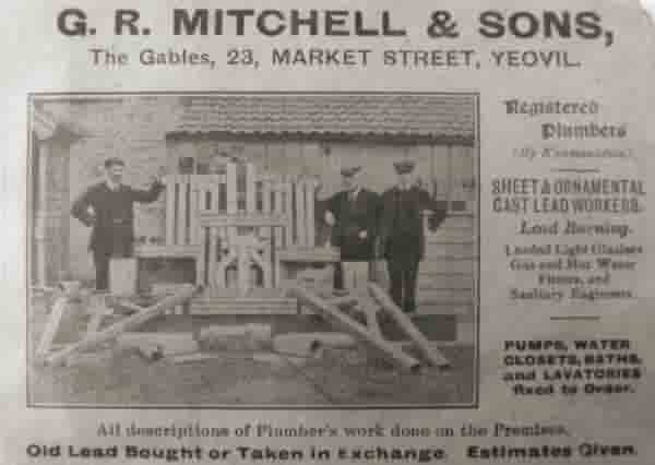 Kelly's Directory of 1919 listed 'George Robert Mitchell & Sons, Plumbers & Glaziers, 23 Market Street'.