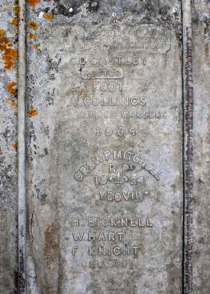 This inscription was worked into the lead on the roof of the tower of St Nicholas' church, Nether Compton, by GR & WP Mitchell.