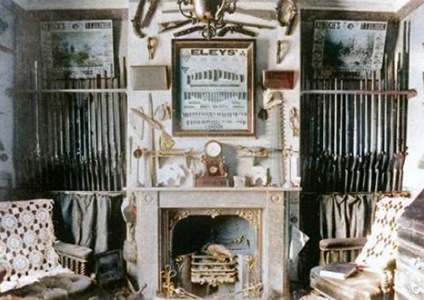 A colourised photograph of Henry Stiby's study at 5 The Park. His gun collection was donated to the Wyndham museum and is now, most sadly, locked away in the council's store at Lufton.