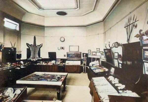 The Wyndham Museum in the former billiard room at 28 Kingston. The museum was later housed in the municipal offices in King George Street (see next photo) and then in the coach house of Hendford Manor. Today it is all locked up in Artillery Road and, although it is still accessible by appointment, how awful is that! Photographed before the dispersal of the exhibits in 1928.