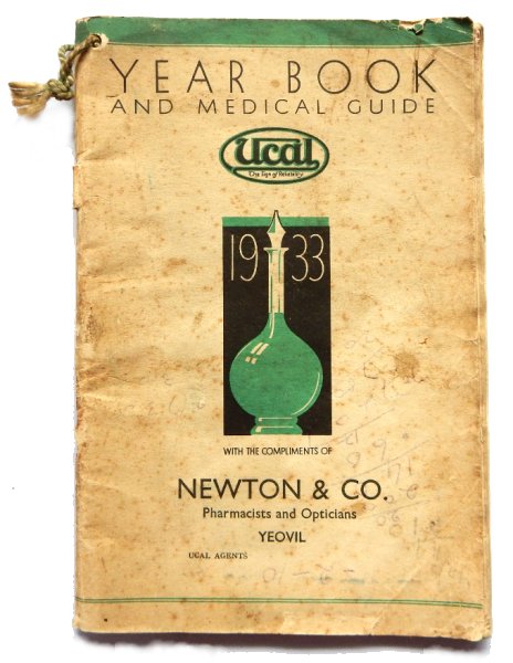 Newton & Co's 'Year Book and Medical Guide' of 1933. Issued by the UCAL (United Chemists Association Limited) chemist's supply company, the book contained (apart from a myriad of UCAL advertisements) notes for the treatment of everyday medical complaints, poisons and antidotes, a retrospect of sport and a section on famous British film stars.
