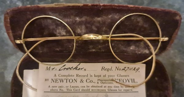A pair of spectacles and case sold by Newton & Co "Pharmacists & Opticians", probably dating to the first half of the twentieth-century.