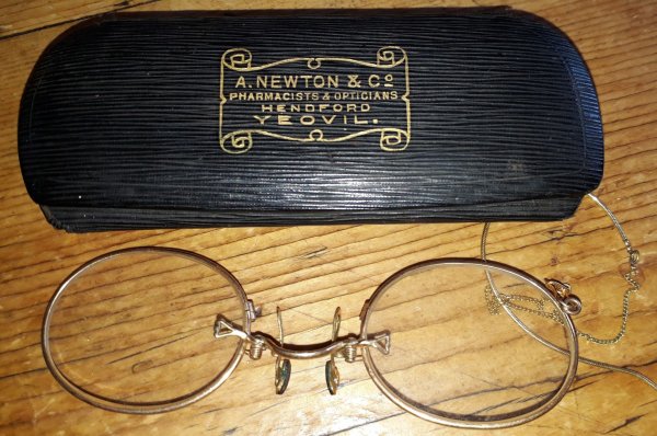 A pair of pince-nez and case sold by Newton & Co "Pharmacists & Opticians" of Hendford,