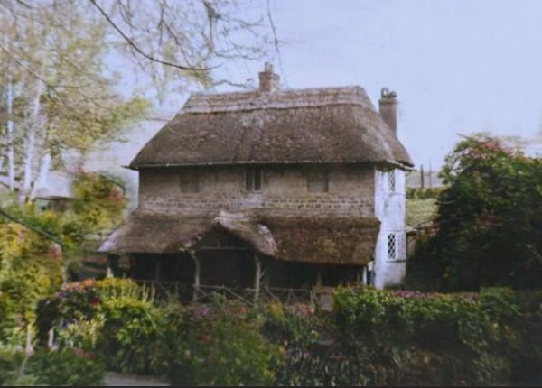 A 'chocolate box' image of the cottage in a postcard of 1906.