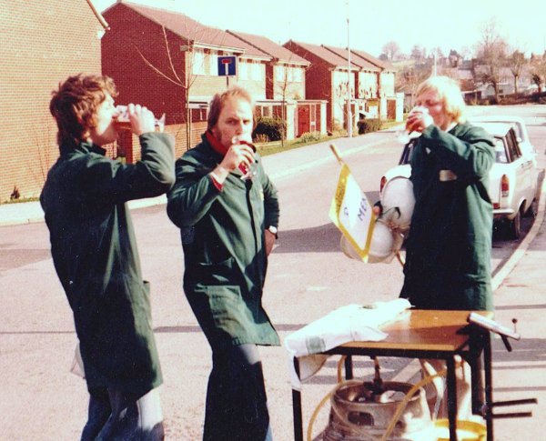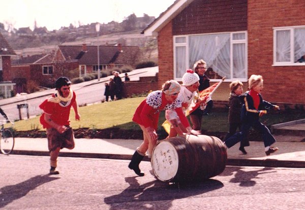 By 1978 a brewery could see the potential and sponsored the club financially, so better furniture and fittings could be purchased making the bar area more comfortable and appealing. Fund raising had to continue, a sponsored walk Yeovil to Sherborne and a barrel race were organised for Good Friday. The latter consisted of teams rolling a beer barrel from the Club along Lysander Road, up Pine Tree Avenue, along Rowan Way, through Forest Hill shops' car park and back to the Old Barn with drinking stations on the way - which obviously was a pint of beer. A Summer Fête was arranged which included a Tug-of War competition.