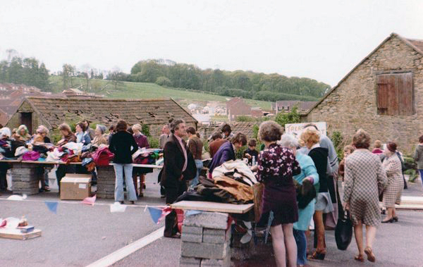 A fundraising jumble sale held in the Yew Tree / Forest Hill car park. Photographed in 1977.