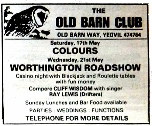 An advertisement for the Old Barn Club in the 15 May 1997 edition of the Yeovil Express & Star.