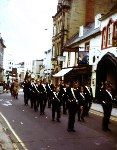 The parade then turned into High Street - seen here with the Boys' Brigade contingent passing the Mermaid Hotel in the days it was painted white with red window surrounds. Thank goodness it was restored back to its wonderful natural stone facade.