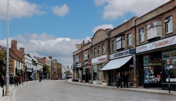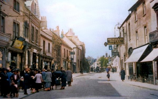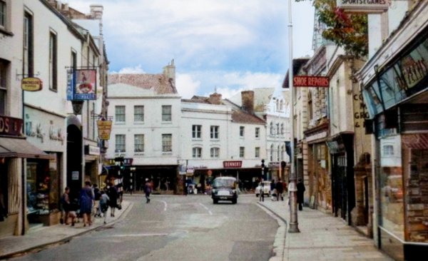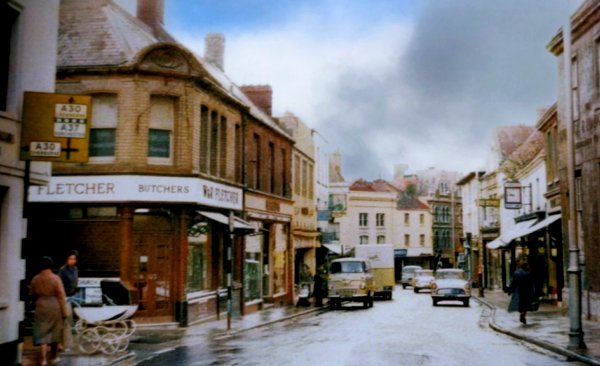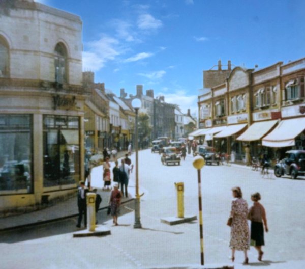 .... and looking back the other way, towards High Street, in a colourised photograph of the mid-1960s.