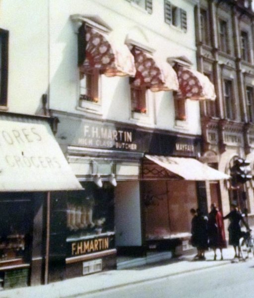 The building known as Mayfair was, for many years Frank Gaylard's hairdressing salon and home to the Yeovil Toilet Club. By the 1950s the building had been divided into two shop premises; FH Martin butchers and Mayfair dress shop.