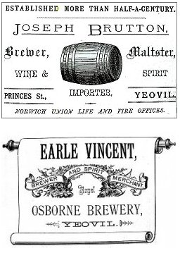 Joseph Brutton’s brewery was established in 1825 in Clarence Street - originally starting life as Kitson and Cave's, subsequently Cave's and was in co-partnership with Thomas Cave by 1854 as Cave and Brutton's, before becoming J Brutton & Sons Ltd. This was to become the largest of Yeovil's breweries, finally being acquired by Charrington & Co (South West) Ltd. The brewery was demolished in 2003 and the site redeveloped as housing. Thanks to Mike Hine for the following memory - "I recall their beer as being nasty, thin, sour piss-water. It could have been that I was too young to appreciate its qualities."